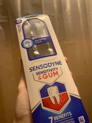 [This review was collected as part of a promotion.] Sensodyne Sensitivity & Gum toothbrushes are great for sensitive teeth and gums. They are safe for everyday use and work great together when using Sensodyne toothpaste together. Work great for cleaning your teeth wothout harming them .