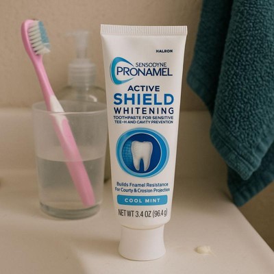 - Sensodyne Pronamel Active Shield Whitening Toothpaste offers 24 hour cavity protection (1)