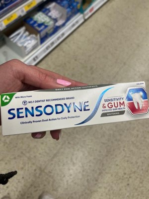 - Three 3.4-ounce tube of Sensodyne Sensitivity & Gum Sensitive Toothpaste