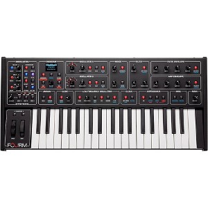 The Sequential Fourm compact polyphonic analog synthesizer delivers the soul of classic analog synthesis in a compact, hands-on unit. Built around the Prophet-5 voice structure, this synth features dual oscillators with simultaneous waveform selection and a 4-pole low-pass filter. The addition of bass compensation boosts low-end response, giving every patch more punch. Polyphonic aftertouch on the 37-note slim-key keyboard lets bend notes or swell chords, unlocking expressive techniques not possible on most polysynths. With intuitive top-panel modulation, the unit is designed for musicians who want immediate access to sound-shaping tools—without menu-diving. Studio producers and synth enthusiasts will find this synthesizer ready for live play, sound design and hands-on experimentation straight out of the box.