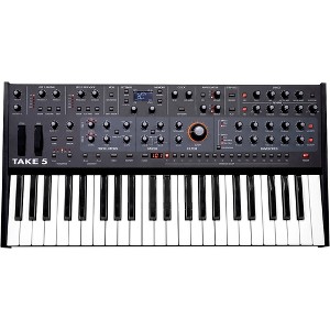 A full-featured subtractive synthesizer, the Take 5 five-voice poly synthesizer sports two VCOs and a sub oscillator per voice, a classic 4-pole, resonant analog filter from the Prophet-5 Rev 4 design, 44 full-size keys and a premium Fatar keybed. Its clever key-split feature gives players access to a wider playable range than many other compact synths by enabling players to divide the 3.5-octave keyboard into two separate performance zones. Dual Digital effects and a dedicated overdrive, continuously variable wave shaping and front-panel access to analog FM ensure the Take 5 can cover a wide range of sonic territory, from vintage to modern.
