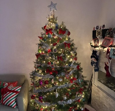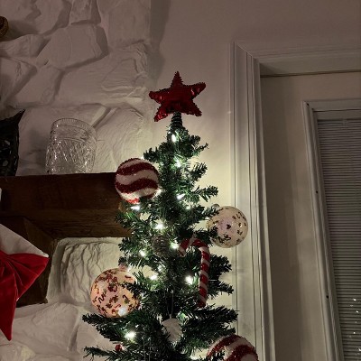 A: The tree topper is primarily red, adding a vibrant touch to your holiday decor.