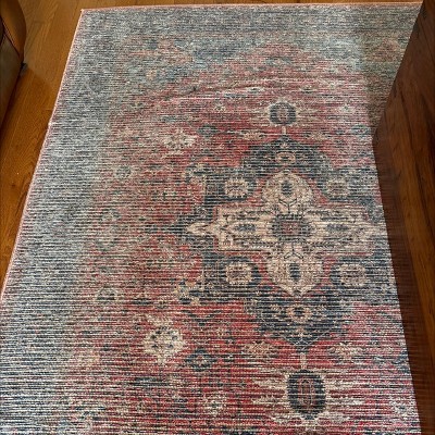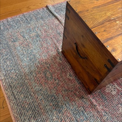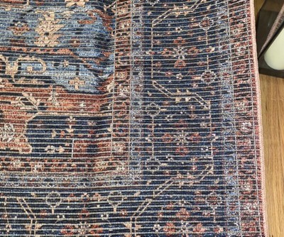 AWFUL - VERY different than the photo. So disappointed since I buy this brand a lot but there is so much wrong: the texture is not a hand-loomed feel and came with lines running width wise down the rug that were bare and missing the material; colors are much darker and muddled; backing is not nearly the same; has a greasy rubberized feeling to it. DO NOT BUY