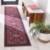 The rug boasts a captivating design with a dynamic red and navy color palette that promises to infuse your space with elegance and a touch of traditional charm. The intricate pattern is a visual feast, featuring ornate motifs and a harmonious composition that draws the eye and complements your existing furnishings.
