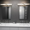 Simple meets sophisticated in the Serenade vanity light. This contemporary bath bar's etched glass shade creates a soft, sleek appearance while evenly diffusing the integrated LED. Delicate accents in a lustrous Polished Chrome or Matte Black wrap the shade in added shine.