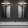 Simple meets sophisticated in the Serenade vanity light. This contemporary bath bar's etched glass shade creates a soft, sleek appearance while evenly diffusing the integrated LED. Delicate accents in a lustrous Polished Chrome or Matte Black wrap the shade in added shine.