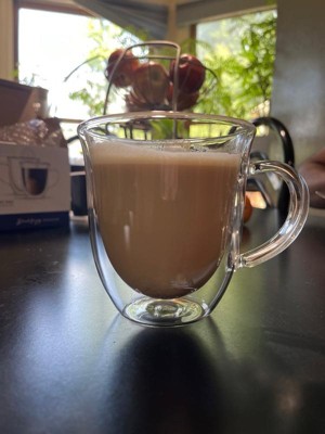 [This review was collected as part of a promotion.] I love the shape and design of these JoyJolt Serene Double Wall Insulated Glasses 13.5 oz Mugs. They're the perfect size for hot cocoa, coffee, or even a latte or cappuccino. The double insulated wall helps keep the outside of the cup cool to the touch while the inside still has your hot beverage. Even after pouring a fresh cup of piping hot coffee, the outside of my mug was just barely warm to the touch. I also love how the mug is clear. I think it gives it a nice appeal and it goes with any kitchen design.