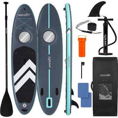 Introducing the SereneLife 93” Inflatable Stand-Up Paddleboard, perfect for young adventurers ready to hit the water! This inflatable SUP is designed specifically for children and teens, featuring a stable and wide shape that ensures safety and comfort while paddling. Made from marine-grade, waterproof materials, this paddleboard is built to withstand the elements, making it durable for outdoor fun. The non-slip EVA deck pad provides extra grip, giving young paddlers confidence as they navigate lakes, rivers, or oceans. With a hassle-free setup, this paddleboard inflates quickly, allowing you to get on the water in no time. Whether your child is a beginner or an intermediate paddler, the SereneLife paddleboard is the perfect companion for a fun-filled day on the water!