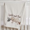 Wrap your baby up in warmth and comfort with the Levtex Baby Serengeti Blanket. Made of an adorable soft grey plush fabric , this blanket features an appliqued and embroidered cheetah taking a nap on a tree branch on a soft plush cream ground and the words WILD AND FREE embroidered above This plush blanket measures 30 x 40in. and is machine washable for easy maintenance.