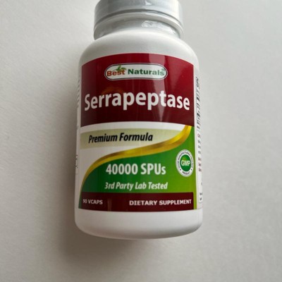 Best Naturals Serrapeptase supplies 40,000 SPUs (serrapeptase units) per vegetarian capsule, with 90 capsules per bottle for convenient daily use over an extended period. This supplement is manufactured in the USA in a GMP-compliant and FDA-registered facility and is third-party lab tested for purity and quality. The formula is non-GMO, gluten-free, and free from artificial colors, flavors, sweeteners, and preservatives. It is also made without common allergens such as soy, dairy, wheat, eggs, and yeast, making it suitable for various dietary needs.