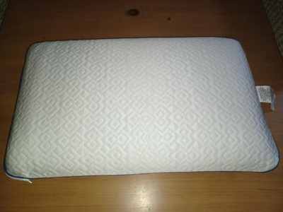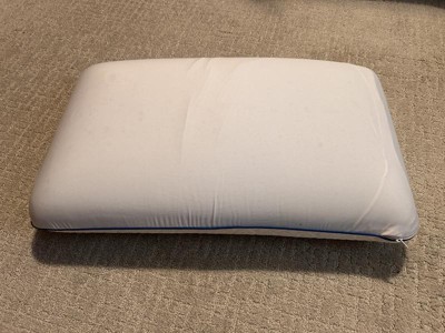 This Serta pillow is pretty great. Every time I lay my head on it, I give a sigh because it’s like lying down on cold sheets… but it stays cool for awhile! Obviously it doesn’t stay cool forever but it feels good, especially when you flip it over to keep the cool going. I like that you can remove the cover to wash it, but the inside is foam, so that can’t be washed, unfortunately. It supports my head pretty well — I’m a side sleeper and it does a decent job of supporting my neck. The foam springs back once you take pressure off. I will say, it had a strong unpleasant odor when I took it out of the bag and it took FOREVER for it to dissipate (like, several days), and the smell is still kind of there. That’s pretty important when this is something you are putting your face near.