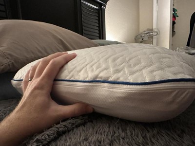 I have several cooling pillows because I sleep hot. Like, nothing on under a thin blanket all winter long in the Midwest hot. So I’ve had a few experiences with pillows like and this is not a great one. As far as the cooling effect it’s not that great. Honestly not that noticeable over a regular pillow. Something that’s odd is it has two different surfaces. One side is sheer over the foam core and the other is quilted and thicker. So even if you wanted to flip it to the cool side it becomes a completely different experience. It does sleep comfortably for me though. I like having the quilted side down and it’s a good balance of soft and supportive.