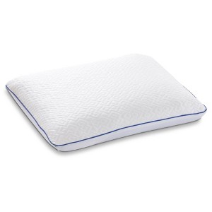 Two technologies combine to keep you even cooler and more comfortable at night with the Serta Cool Renew Pillow. Crafted with refreshing gel memory foam, this pillow cradles your head and neck in therapeutic comfort while helping provide an optimal sleep temperature. Then, it’s wrapped in a ConstantCool cover woven with specially treated fibers that deliver an instant cool feeling to your head and neck. Because those fibers won’t wash out, you’ll be able to enjoy cool and restful sleep even after washing.