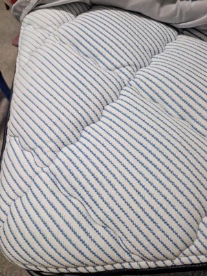 [This review was collected as part of a promotion.] This mattress in a box from Serta exceeded my expectations (they were very low as I couldn’t believe a mattress *could* come in a box). The mattress was easy enough to slide out of the box (although it took some tugging) and I was very grateful it didn’t explode into full form once I cut open the plastic that was keeping it condensed. The mattress is very pliable and because it is so bendy and moveable, it makes it a bit difficult to slide down a hallway since it wants to bend over if it’s sideways. It is very comfortable but you might want a topper if you don’t like a plushy quilted top; you can feel all the quilted squares as you lay on it. We did notice some discoloration spots on the underside of the mattress. I am hoping that it is simply a dye issue and nothing else.
