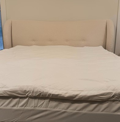 Oh my goodness, I am in love. I love going to bed now. This has absolutely leveled up my mattress. My mattress was pretty firm and it’s probably kind of what I needed for my back, but it just wasn’t comfortable but , as soon as I added this to it. It absolutely just made it 10 times better ! You still get the softness that you need like for pressure points , But it doesn’t feel like you’re sleeping on a rock anymore! It’s a couple inches thick and adds great cushion . I highly suggest getting one of these. I feel like you can wash the top no problems as well . That’s always a bonus. I have pets and kids and stuff and of course there’s spills.