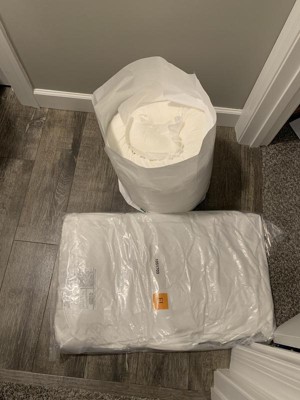 Super soft and cozy. Took 2 people to get it out of packaging and the cover on. Letting it rest open would have been ideal before tryong to fit. Great addition to a queen bed. Wish i had the king too.