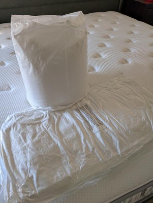 Great two piece mattress for my guest bed. It was packaged well and easy to open up and unroll. No weird smells or funk. I love that there are two parts - a foam mattress topper and then a thinner topper to put over it and protect it. I can easily remove the top portion and wash in my machine, but I don't have to remove the main base at all. Everyone who has slept on this topper raves about how comfortable the bed is!