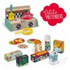 INCLUDES: Wooden kitchen, Frying pan, Pan with lid, Spatula, Printed dishes, 7 packs of supermarket products, Stickers, Instructions.