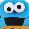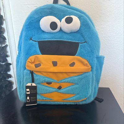 Embrace your love for Sesame Street with this playful blue Cookie Monster backpack. Designed to resemble Cookie Monster holding a cookie, it features fun 3D plush details for the character's eyes. This functional accessory includes a front zipper pocket for easy storage and an interior laptop sleeve for your devices. Crafted with soft faux fur, the bag measures 12.5" W x 17" H x 6.5" D and is easy to maintain. Just wipe it clean to keep it looking its best.