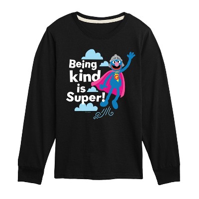 Sesame Street - Kawaii Super Grover - Toddler and Youth Long Sleeve T-Shirt - Show off your love for a childhood classic with officially licensed Sesame Street graphic apparel! Featuring bold, colorful designs of your favorite characters like Elmo, Big Bird, Cookie Monster, and more, this collection brings playful nostalgia and iconic style to everyday wear. Perfect for fans of all ages, each piece combines comfort with a fun, retro vibe straight from the world of Sesame Street.