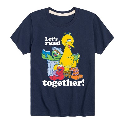 Sesame Street - Lets Read Together - Toddler and Youth Short Sleeve Graphic T-Shirt - Show off your love for a childhood classic with officially licensed Sesame Street graphic apparel! Featuring bold, colorful designs of your favorite characters like Elmo, Big Bird, Cookie Monster, and more, this collection brings playful nostalgia and iconic style to everyday wear. Perfect for fans of all ages, each piece combines comfort with a fun, retro vibe straight from the world of Sesame Street.