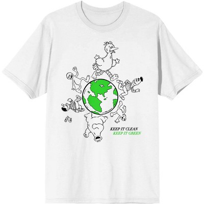 Take a stroll down Sesame Street with this men's tee. The shirt features the show's title in large penned black letters. The title sits in a white rectangle with a black frame. The tee comes in a white short sleeve crew neck and makes a great gift for Sesame Street fans.
