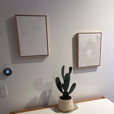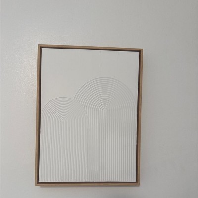Add texture to your living space with the 12"x16" Rainbow Arches Framed Embellished Canvas Set from Threshold. This set looks wonderful when displayed in a bedroom, dining room or home office. The monochrome tones look great when hung together or separately in different rooms, giving any wall a little personality. Each framed canvas from Threshold is encased in a sleek wood-finish frame that offers clean style and the design seamlessly blends with any decor.