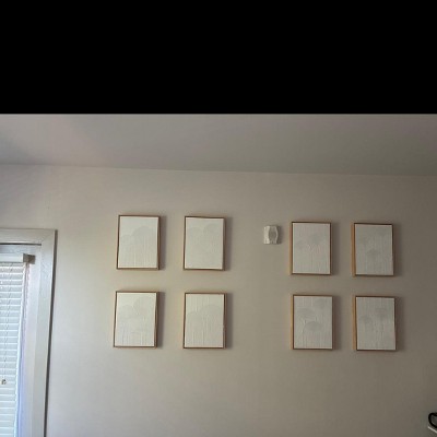 I bought this artwork to hang on a small wall that is painted a dark color. I really like the contrast between the white of the art and the wall color. I bought these in store and unfortunately they all had a smudge on them. They really need a protective covering on the front of them. Overall, I am really happy with how these look. Recommended!