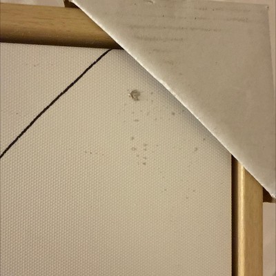 Tape is used to secure the heavy canvas to a thin piece of cardboard. Why not glue?! The canvas detached from the cardboard in the middle of the night last night and freaked out my whole family. Fun bonus was when the wall art arrived they were already dented due to inadequate packaged. Thanks for caring, Target!
