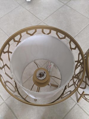 With these 17.5" H Lucian Tripod Base Table Lamps from River of Goods, you get two elegant lamps you can place on any side or console table in your home. Showcasing gold-tone metal tripod bases and white fabric shades encased in metal with intricate cutout patterning, these table lamps will add a touch of glam style to your modern or transitional home decor scheme. The lamps require one 60-watt E26 bulb each (not included), and are LED compatible, and the 60-inch power cord with an in-line switch allows for versatile, fuss-free placement.