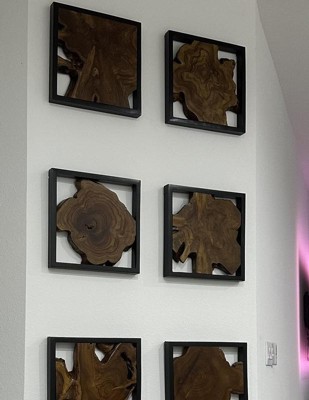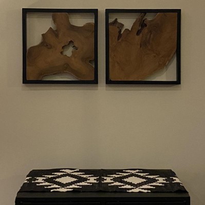 Olivia & May Set of 2 20"x15" Wood Abstract Handmade Live Edge Wood Slab Wall Decor with Black Frame Brown: Vertical Nautical Carved Art