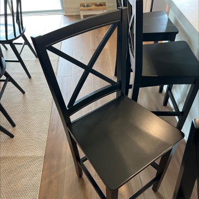 We liked these chairs mainly because they matched our island. The design of the back of the chair was not comfortable for me to lean on, but it was ok for my husband. One of the chairs was not well-made - it teetered, one of the cross pieces used a piece of wood that had a noticeable gouge in it, there were several places where the paint needed touching up. Nevertheless, we decided to keep them and make it work for us - touch up the paint, make a back cushion to cover the gouge and increase comfort, and doctor the foot so the chair sits evenly. The other chair had a minor blemish in the paint. The price was right; you could say you get what you pay for. My engineer husband assembled the chairs without much difficulty.