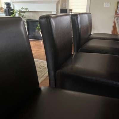 These chairs are great! Nice soft leather and perfect for our counter. My husband had some issues with a couple of chairs not having the right screws but it was an easy fix . Packaged really well.