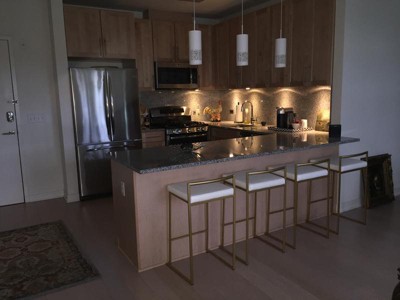 I love these bar stools. They slide under the counter and look sleek & elegant! They're comfortable and sturdy. Couldn't be happier with my purchase!