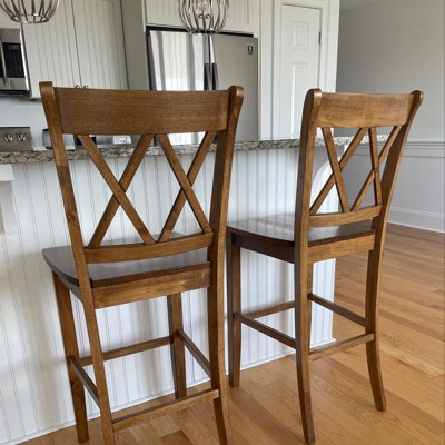Complete your home bar with the South Hill Double X Bar Height Chairs (Set of 2) from iNSPIRE Q. This traditionally styled set displays a double x back design that is both supportive for your back and sophisticated in look. Classic farmhouse charms come from the visible wood grain finish, with multiple color options available to suit your unique taste. Crafted from sturdy rubber wood, this set is durable and reliable, making them great companions for your next wine night.