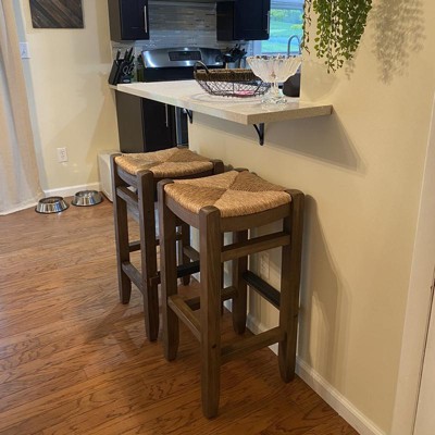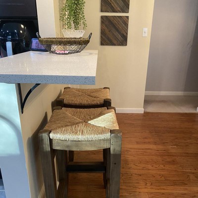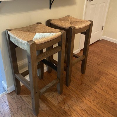 Set of 2 30" Davenport Wood Barstools with Rush Seats Light Amber - Alaterre Furniture: Rustic Industrial, Pine Frame