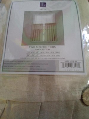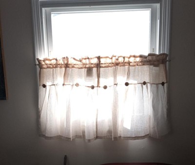 [This review was collected as part of a promotion.] I must say these Linen Button Kitchen tiers are very unique. I love the two different colors & the buttons add so much charm. It gives my kitchen window a new look. I have a window by my table & I put the tier in this window. I love looking out while enjoying a cup of coffee. They are the perfect size, not too long like many kitchen tiers are. They are made of cotton, so the material feels great & it's not too thin. They make my kitchen feel new & refreshed with one little change. So happy with the look & quality.