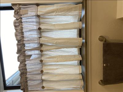 Guests appreciate the stylish design and quality of these linen button kitchen curtains, which add a charming touch to various spaces. Many find them perfect for filtering light while maintaining privacy, making them ideal for kitchens and small windows. The fabric is durable and machine washable, enhancing their practicality. However, some guests noted discrepancies in color and length, suggesting a need for careful selection based on personal decor preferences.