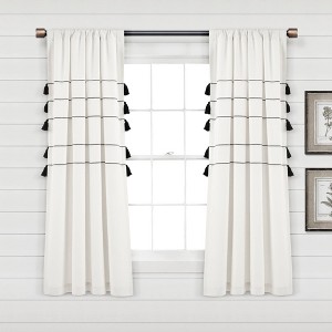[This review was collected as part of a promotion.] Just got my Lush Decor Farmhouse Boho Stripe Woven Tassel Yarn Dyed Cotton-WP-Ivory/Black-pair-42x84 of window curtains recently. They came in a clean plastic bag neatly folded. They were VERY easy to hang up. They slid on standard curtain rods, and hung very proudly in our bedroom. The tassels were fluffed out and positioned to "fan" out. A very "one of a kind" type look. There are five lines of black positioned horizontally and spaced proportionally. The lines are a stitched look, not a hard solid line -- easy to look at. Two of the lines were slightly lower than the three above, -- and the extra gap gave a custom look to the curtains. The semi thick cotton material is such that it is not see through, yet not so thick to being too heavy. I like the semi thick (but light in weight), so that the curtain rods do not have to support massive weight. My rod clips have pulled from the walls before, and with this fabric I do not have to worry about that. Not being see through is great, our last curtains made me feel like I was giving a show. Looks like we had a interior designer come in and set us up with this great look. It is our secret that we paid no one, and had Lush Decor give us that look.