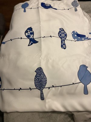 Set of 2 63"x52" Rowley Birds Light Filtering Window Curtain Panels Blue/Orange - Lush Décor: Microfiber Rod Pocket