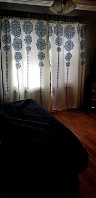 [This review was collected as part of a promotion.] These medallion curtains are the perfect finishing touch to my living room. I just recovered an antique chair in a white and blue print and I needed another pop of color. I wanted something other than throw pillows. I decided on the blue and white medallion print and they are absolutely perfect. We have low ceilings so these look elegant reaching from floor to ceiling over our large window. The seams are all well sewn and nicely made. They even block the perfect amount of sunlight during the day if I want to take a nap. I have my eye on one of their pretty shower curtains for my bathroom, I might make that my next purchase!