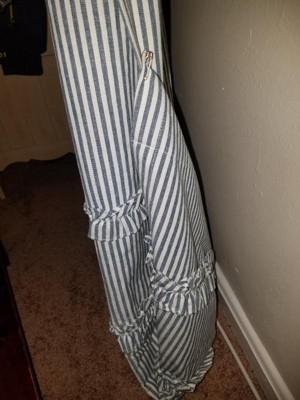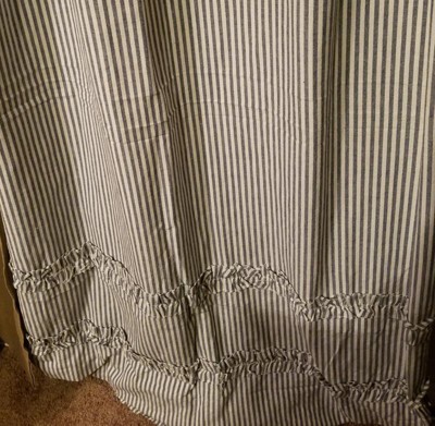 [This review was collected as part of a promotion.] I'm so happy with my new Vintage Stripe Yarn Dyed Cotton-Denim Blue 40×84 curtains. I love that they come in a pair and have little ruffles on them. They make for a great living room center piece while being able to keep the light out. These are also great for any room since the length is nice and long adding that touch of elegance and sophistication. Even if you find the length is to long it is very easy to pin them up to your desire or use ties to make them shorter. Im also very pleased with the stitching throughout the curtains and how evenly the ruffles were sewn in. I even saved the hanger it was on as it is perfect for using to store my sheets on after washing them. Another great feature with these curtains are you can hang the ruffles towards the top or towards the bottom. I chose ruffles towards the bottom as I just liked the way it looked. I enjoy walking into my living room as these just stand out and bring me a sense of happiness. I can't wait now to change my other center curtains and add a nice rode along the top to really make them pop. I highly recommend these curtains for coming in a pair and working well with any decor!!
