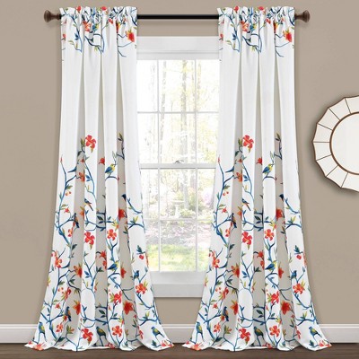 Set of 2 84"x52" Aprile Light Filtering Window Curtain Panels Orange/Turquoise - Lush Décor: Modern Floral Drapes