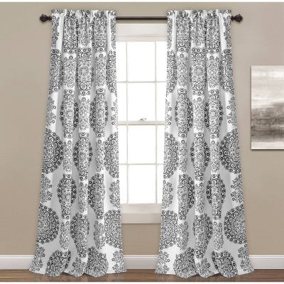 [This review was collected as part of a promotion.] I received my Lush Decor 52” x 84” Palm Lane curtain panels by delivery. When I opened the box I immediately investigated its material. It felt like silk and velvet at the same time. If that makes sense. The pattern consist of various ombré gray, intricately designed leaves, on a stem spread out like feathers. They are hanging in my office at home to remind me of the delicate life I’m residing in.