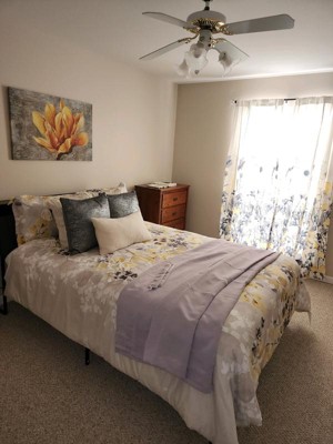 Ignore the lilac curtains on the bed, but I'm happy with my purchase. I bought the comforter and curtains for my guestroom. I wasn't sure if they would coordinate since they were sold seperately, but I love the look and would purchase again...