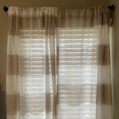 I was so thankful to find a pretty, semi-sheer horizontal striped curtain panel in Indigo. They are exactly what I had been searching for. They could easily be paired with a roman shade if you desire. The curtains are well made. Seams are done well, the stripes line up and allow some privacy while letting the light in. And the price, well, it can't be beat. The other nice quality is they do not look cheap. They have a bit of "linen look" to them as well. Thanks Target!