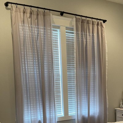 Finally found an affordable linen curtain in a longer length (108)! Love the airy look it brings to my family room. It lets in just the right amount of light with also giving privacy at night.