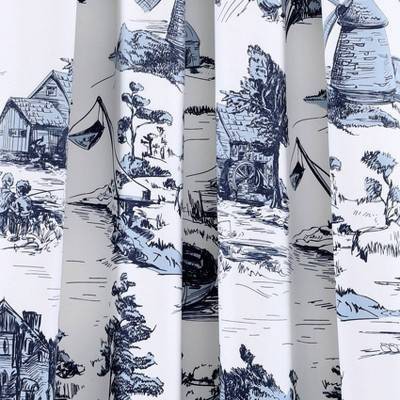 Set of 2 (95"x52") French Country Toile Light Filtering Window Curtain Panels White/Blue - Lush Décor: Traditional Rod Pocket Design