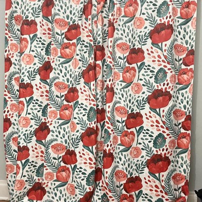Set of 2 95"x52" Poppy Garden Light Filtering Window Curtain Panels Blue - Lush Décor: Modern Floral Drapes