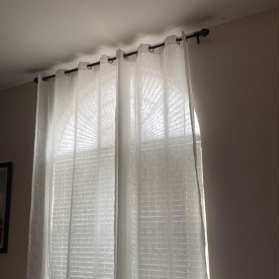 I loved these curtains in the photo and in the package when they arrived. On my window, they look about as sheer as they appear in the photo, however, the pattern completely disappeared even though there is no direct sunlight through that window. I expected a light pattern with some shimmer due to the metallic print but it was undetectable. My husband said it looked like a sheet of cheesecloth hanging on the window. There was also a large flaw of bunched-up thread on one of the panels. Unfortunately, I will be returning.